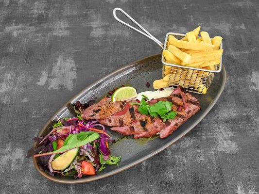 A wonderful cut of meat - Sirloin Steak. Choice of 2 sides. (GF)