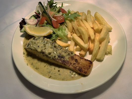 with lemon, dill & caper sauce & choice of 2 sides. (V/GF)
