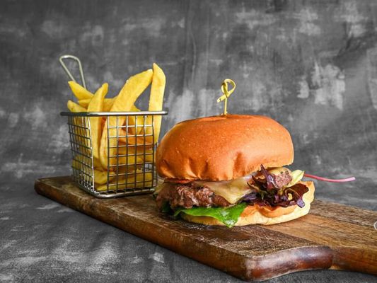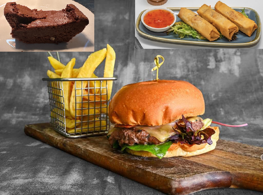 Burger Combo Meal Deal. [3 Courses] Choose a Entree, Burger & Dessert. Plus Choice of Drink - 50% Off. (GFA/VA)