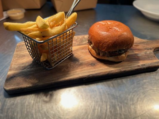 With salad, tomato, cheese & burger sauce. (GFA/VA)