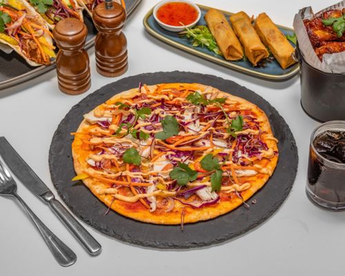 10" pizza base. With slaw and chilli mayo. (GFA)