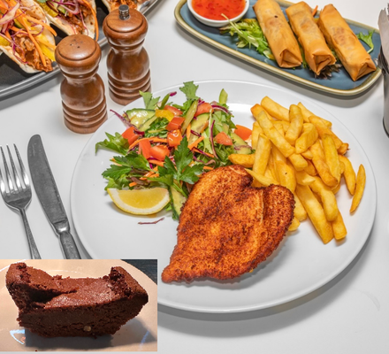 Chicken Combo Meal Deal. [3 Courses] Choose a Entree, Chicken Dish & Dessert. Plus Choice of Drink - 50% Off. (GFA/VA)