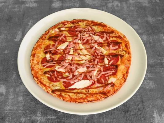 10" pizza base. Topped with BBQ sauce. (GFA)